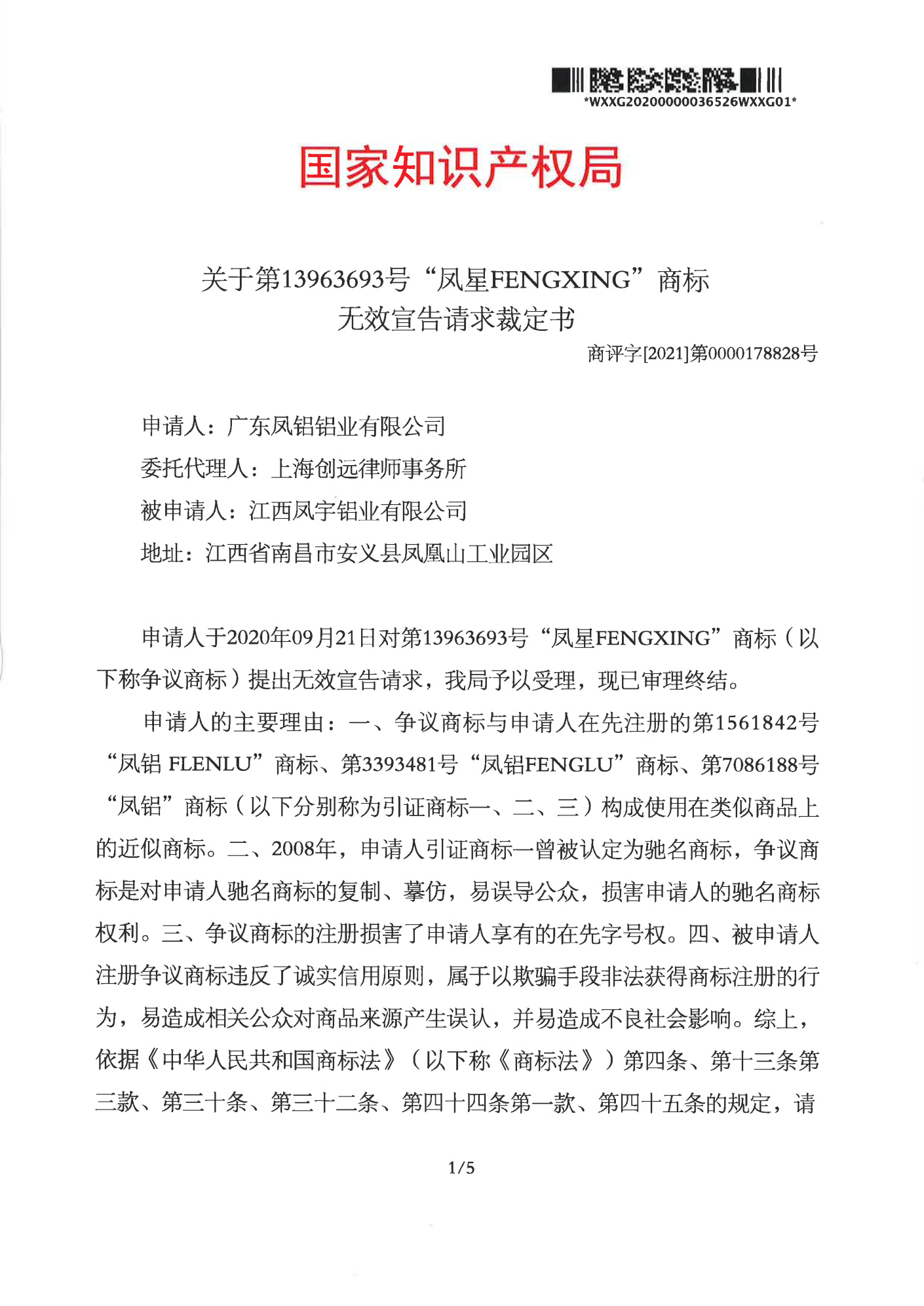 铜川辉知队 | 国家知识产权局:“凤星”商标无效