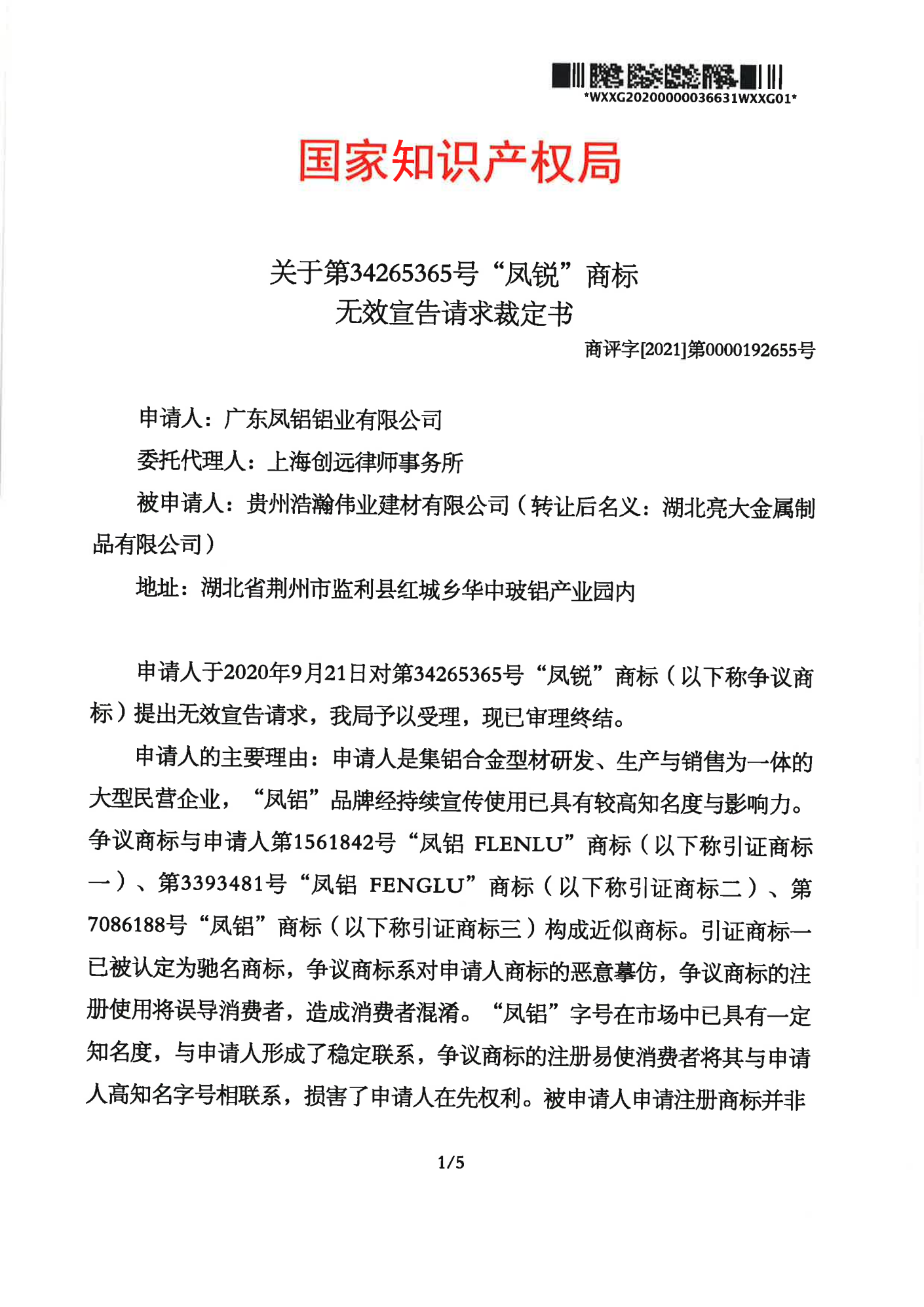 铜川辉知队 | 国家知识产权局:“凤锐”商标无效