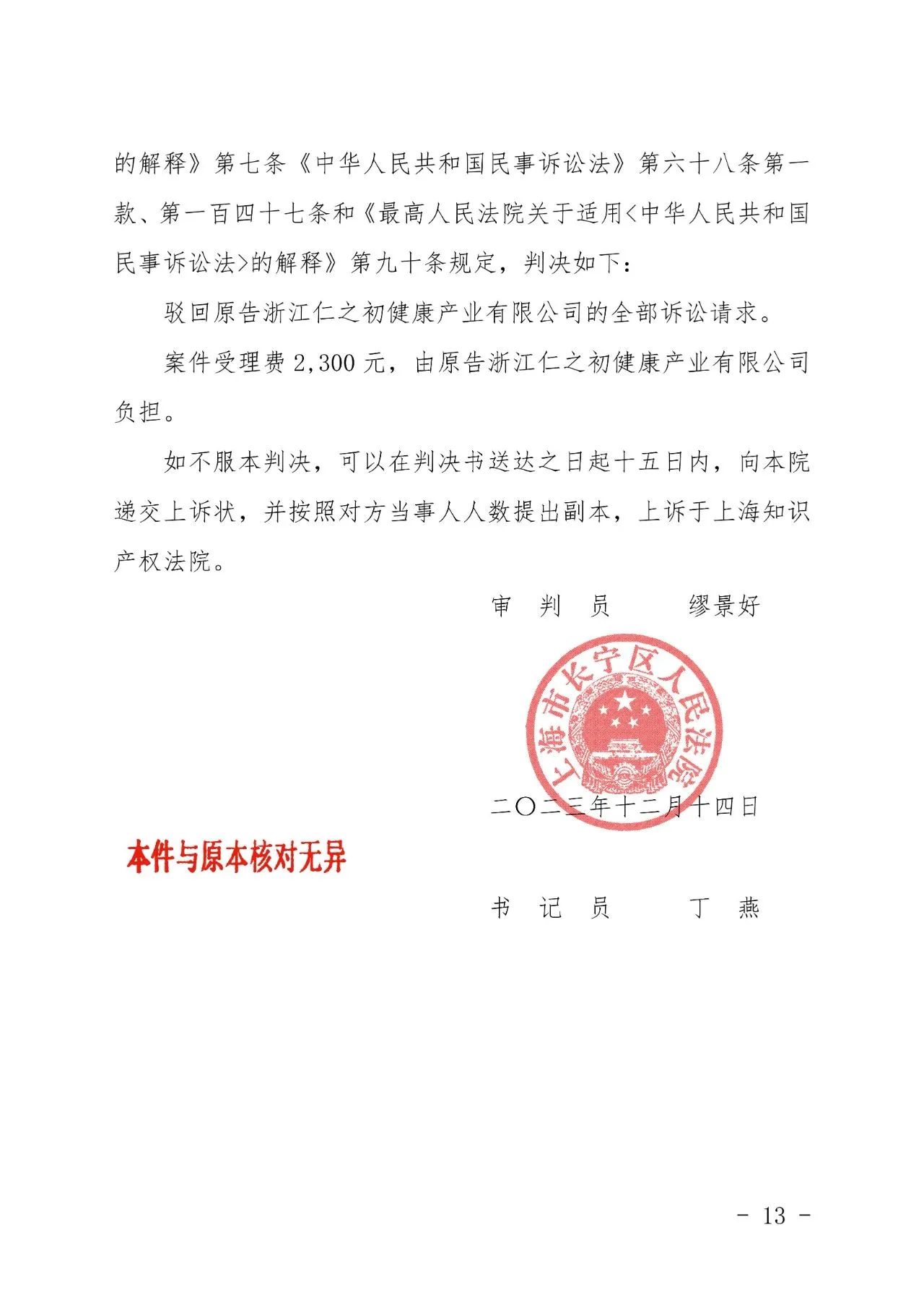 铜川辉知胜诉佳讯 | “仁之初健康”著作权及不正当竞争纠纷案,法院:驳回全部诉讼请求!